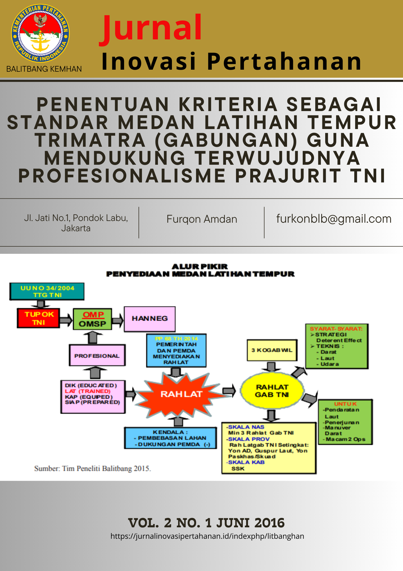 The country defense aims to ensure the sovereignty of the Republic of Indonesia. This could be achieved if the defense force is adequate and complemented with strong bargaining position and professionalism. Revolution in Military Affairs (RMA) has three main elements, namely, doctrine, technology, and tactics. According to RMA concept, research and development has very dominant role, especially to standardize combat training field that can be transformed into battlefields digitization. Combat training is the most important element in maintaining military performance in order to maintain and improve the readiness of personnels and weaponry. In order to increase military professionalism, combat training should be carried out, starting from individual training, the smallest unit level, up to the joint exercise for three military branches. Thereby, the area for combat training is a necessity that cannot be ignored. Some aspects that must be considered in determining combat training field are tactical and strategic aspects, as well as security aspects. The problem is what parameters are influential in determining combat training field for joint exercise of three TNI’s branches? The purpose of this study is to analyze the conditions of the existing combat training area for joint exercises and to formulate various criteria/parameters as ideal standard to determine combat training field for joint exercises of three TNI’s branches. This study uses Dematel method to describe the relationships among factors and to find the key factors in describing its effectiveness. The analysis results in classification about the relationships and relational strength among criteria/parameters. This result shows us that the criterion of current main instruments of defense system (Alutsista) is included in Q1. It means that this criterion has very strong relation and influence to the other sixteen criteria.