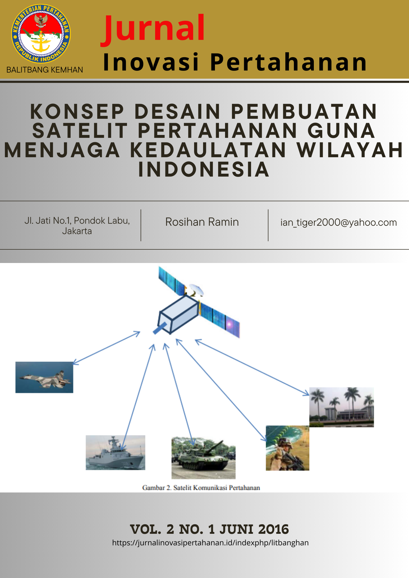This is a study of the design concept of defense satellite manufactured to protect the sovereignty of Indonesia. In 2007 Lapan has created surveillance satellite as the result of cooperation with Germany and had launched into orbit using India’s rocket. In 2014 Lapan has designed its own satellite in Bogor and will be launched in 2016 in India. The concept of defense satellite consists of the manufacture of communications satellite used for communication in military operations, the manufacture of surveillance satellite used for monitoring/observing the security throughout Indonesia territory, and the manufacture of navigational satellite used to set the navigation of the main instruments of defense system in military operations. This research will enhance the capabilities of Indonesian human resources in mastering satellite technology. The making of design concept of defense satellite is an embryo for domestic satellite manufacture. If our own defense satellite can be made, we can increase the independence of our defense industry.