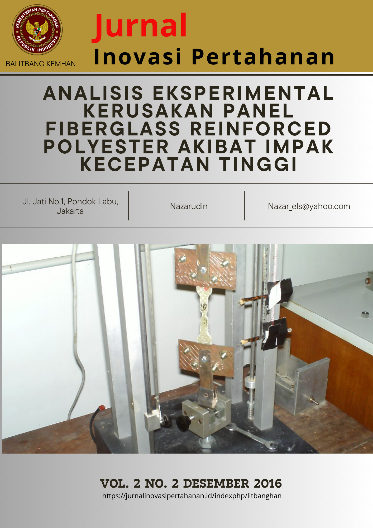 In this experiment, composite panel of fiberglass reinforced polyester was tested. There were three testing procedures, namely ballistic test, tensile test, and bending test. Ballistic test was administered by firing 9 mm bullet using FN 46 pistol. The firing was taken from a distance of 5 meters long to hanged specimen. After endured the ballistic test, the same specimen will be subjected to tensile test and bending test. The aim of these tests was to analyze material condition of the specimen after ballistic test. These series of tests aimed to find out the damage of fiberglass reinforced polyester composite panel caused by high-velocity impact.