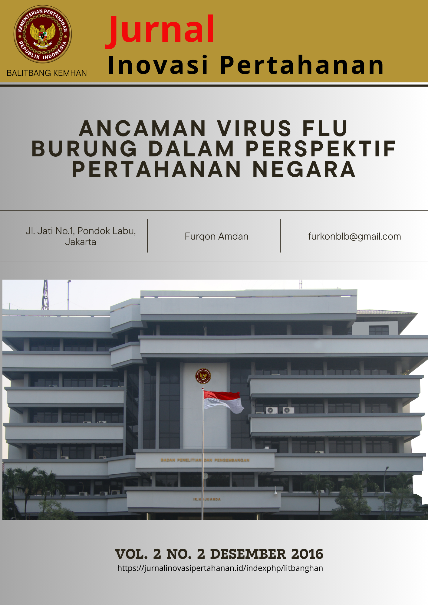 Avian influenza virus naturally already exists in wild birds’ body (as host), so as the spreading of avian influenza outbreak is predicted to occur in wild birds migration pathways when the season changes in the Northern and Southern hemisphere. One of its characteristics is easy to mutate in every phase through its animal/human hosts, so that continuous report on its “epidemiological” development is required. The most urgent threat to note is the potential use of avian influenza virus as a raw material for “biological weapons” and as an instrument of terror. In order to anticipate this threat, we need a security concept which involves institutions/agencies related to levels and stages of emerging threats. Law No. 3/2002 in article 7 paragraph (3) puts governmental agencies and institutions as the spearhead in accordance with their respective field and function to handle a wide range of threats in integrated manner, including the threat of avian influenza.